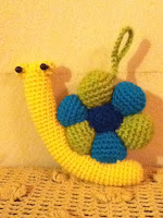 7 esferas,se tejen en forma circular (3 azul claro , 3 verde , 1 azul).